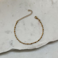 Introducing the must-have accessory for everyday wear: the MORSE Ball Chain Bracelet. This lightweight and comfy bracelet reflects light, giving your wrist a subtle sparkle. Its minimalistic design is perfect for stacking with other favorites or wearing alone.